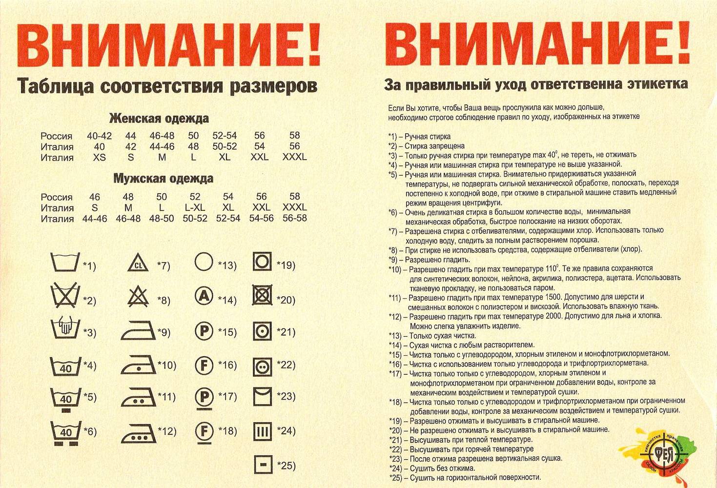 Если вы хотите, что бы ваша вещь прослужила как можно дольше, необходимо строгое соблюдение правил по уходу за изделием, изображенных на этикетке.